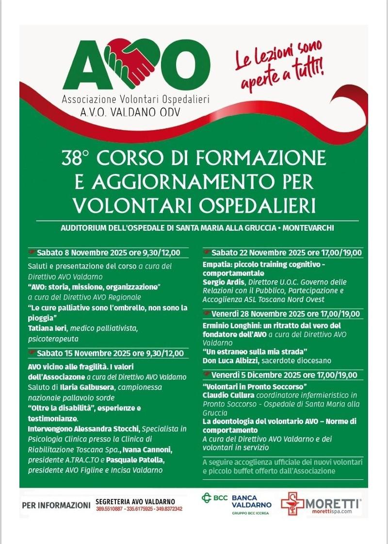 DOPO IL PERIODO PANDEMICO, SIAMO STATI FINALMENTE IN GRADO DI PROGRAMMARE UN NUOVO CORSO DI FORMAZIONE "LEGGERO" (Ovvero di solo 4 incontri),CHE SI SVOLGERA' PRESSO L'AUDITORIUM DELL'OSPEDALE DELLA GRUCCIA (Piano Terreno Zona ex Cup) DI MONTEVARCHI NELLE DATE RIPORTATE NELLA LOCANDINA QUI SOPRA.